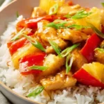 A quick and delicious Asian-inspired dish featuring juicy chicken, red peppers, and sweet pineapple in a savory sauce.