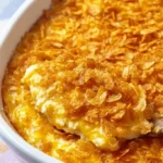 Cheesy Potato Casserole is a comfort food everyone likes. It has mashed potatoes, cheese, and a crunchy cornflake top. If you like easy home dinners, try our garlic Parmesan pork chops with cheesy scalloped potatoes for another simple meal idea.
