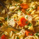 This Chicken Noodle Soup is warm, simple, and fast. It uses common ingredients and cooks in one pot. If you like quick chicken noodle dishes, try the one-pan chicken buttered noodles recipe for a different take.