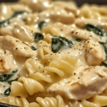 This recipe combines tender chicken breast, fresh spinach, and rotini pasta tossed in a homemade Alfredo sauce. The result is a creamy, cheesy, and flavorful dish that’s both comforting and elegant. It’s a versatile recipe that can be customized with your favorite ingredients.