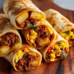 These Chorizo Breakfast Burritos are warm, tasty, and easy to make. They mix spicy chorizo, crispy potatoes, scrambled eggs, and melty cheese inside a soft tortilla. If you want crisp potatoes faster, check this air fry breakfast potatoes guide.
