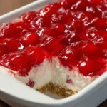 This dessert has a crunchy graham crust, a smooth cream cheese layer, and bright cherry topping. It comes together fast and chills in the fridge. If you like chilled, no-bake treats, try the classic cheese ball recipe for another simple party option.