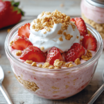 Imagine waking up to a bowl of creamy, dreamy overnight oats that taste just like strawberry cheesecake. These Creamy Strawberry Cheesecake Overnight Oats are the perfect make-ahead breakfast or snack, combining the rich flavors of cheesecake with the wholesome goodness of oats. Topped with fresh strawberries, whipped cream, and crushed graham crackers, this dish is as indulgent as it is nutritious.