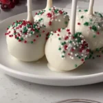 Melt the remaining white chocolate until smooth. Dip each cake pop gently, tapping off excess coating. While the chocolate is still wet, sprinkle with red, green, and white sprinkles for that festive finish.