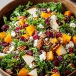 This Healthy Fall Salad uses simple, fresh ingredients. It is quick to make and full of flavor. You get sweet apples, salty feta, crunchy nuts, and bright cranberries. It is light and good for lunch or dinner.