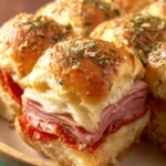 Delicious sliders filled with salami, pepperoni, and mozzarella cheese, perfect for parties or gatherings.