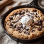This warm skillet cookie is gooey and rich. It uses cottage cheese to stay moist. If you like creamy chocolate desserts, try the related chocolate chip cheesecake bars for a different take on chocolate and cream by visiting chocolate chip cheesecake bars.