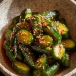 This Korean Cucumber Salad (Oi Muchim) is quick, fresh, and full of bright flavors. It takes about 20 minutes to make. The salad is cold, crunchy, and spicy with a touch of sweet. It makes a good side dish for many meals and adds color to the table.