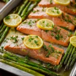 You get a healthy, tasty dinner in one pan. It needs little prep and few ingredients. The butter and lemon keep the salmon moist. The asparagus cooks with the fish, so you save time and dishes.