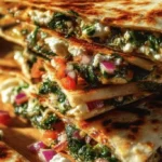 Quick and delicious quesadillas filled with fresh spinach, feta, mozzarella, and red onion, perfect for lunch, dinner, or a snack.