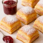 • Finish & Serve: Dust the tops lightly with powdered sugar. Serve warm with raspberry preserves and the dijon-mayo sauce for dipping.