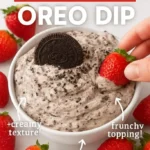 Oreo Dip is a creamy, sweet dip made with cream cheese, whipped topping, and crushed Oreos. It is quick to mix and fun to eat at parties or with family. If you like Oreo desserts, try a related bite-sized treat called Oreo cream cheese protein balls for another easy snack.