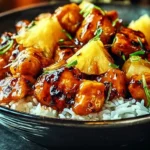 Pineapple Chicken and Rice is a simple, balanced meal with bright, sweet pineapple and savory chicken. It comes together in one pan, so you save time and dishes. The sauce is sticky and glossy, and the rice soaks up the flavors. This recipe works well for family dinners and meal prep.