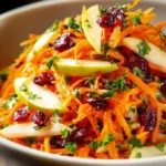A bowl of refreshing Apple Cranberry Carrot Salad with vibrant colors and fresh ingredients.
