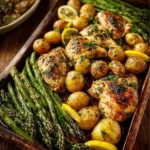 This Sheet Pan Garlic Butter Chicken and Veggies is an easy weeknight meal. It cooks fast and cleans up fast. If you like simple garlic butter chicken, check this similar idea in the garlic butter baked chicken breast recipe: garlic butter baked chicken breast.