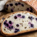 This recipe shows how to make Sourdough Blueberry Lemon Artisan Bread at home. It uses a fed starter, flour, water, salt, lemon zest, and frozen blueberries. If you want a plain sourdough guide first, read this delicious sourdough bread recipe. The steps here add lemon and blueberries for a bright, fruity loaf.