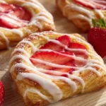 This pastry is quick, tasty, and shows fresh strawberries. It uses simple ingredients and puff pastry for a light, flaky treat. It works for breakfast, snack, or dessert.