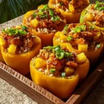 This dish mixes sweet pineapple, savory teriyaki, and tender chicken inside bell peppers. It gives a full meal in one easy package. The peppers hold rice, protein, and fruit for a bright, balanced plate. It cooks in the oven and works for weeknights or a casual dinner with friends.