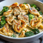 A creamy, flavorful one-pan meal combining cheese-filled tortellini, juicy chicken, and crisp broccoli in a rich garlic Parmesan sauce, ready in under 30 minutes.
