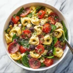 This salad mixes cheese tortellini with vegetables, olives, cheese, and a simple vinaigrette. It is easy to change to match your taste, and it travels well. If you like pasta dishes with simple changes, try a creamy pasta recipe with chicken and spinach for another easy meal.