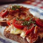 Turkey and Tomato Toast is a simple hot snack. You can make it fast with few items. It mixes toasted bread, sliced turkey, fresh tomato, melted aged cheddar, and crispy bacon. If you also like simple baked treats, try this apple and raisin cake recipe for dessert after your toast.