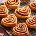 Deliciously soft and gooey cinnamon rolls shaped like hearts, perfect for a romantic breakfast or dessert.