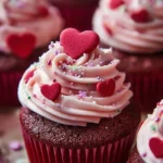 Soft, chocolatey cupcakes topped with beautiful pink frosting, perfect for showing your love on Valentine’s Day.